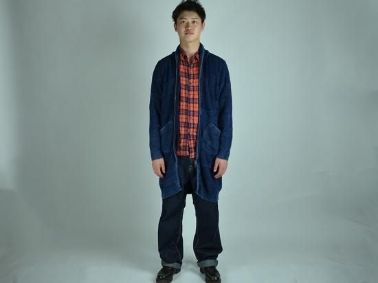 ジップアップのニットコートです。迷彩柄をググッと広げて雲の様な編み柄に仕上げました。ロング丈でゆったり着れる、ちょっとスポーティなニットコートになります。